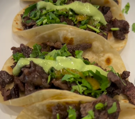 Delicious asada cooked to perfection, house made corn tortillas, guacamole, salsa and cilantro.
