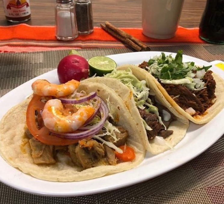 Birria de res, tortilla de maiz recien hechas, repollo, cilantro y cebolla.